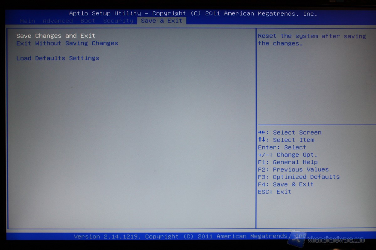 Infine l’ultimo menù chiamato Save & Exit ci permetterà di salvare tutte le impostazioni o meno che abbiamo modificato o di ricaricare facilmente i parametri base del BIOS tramite la voce Load Default Settings.